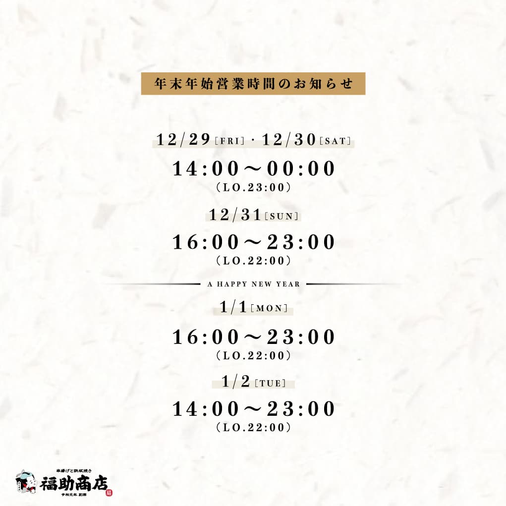 【年末年始の営業時間】