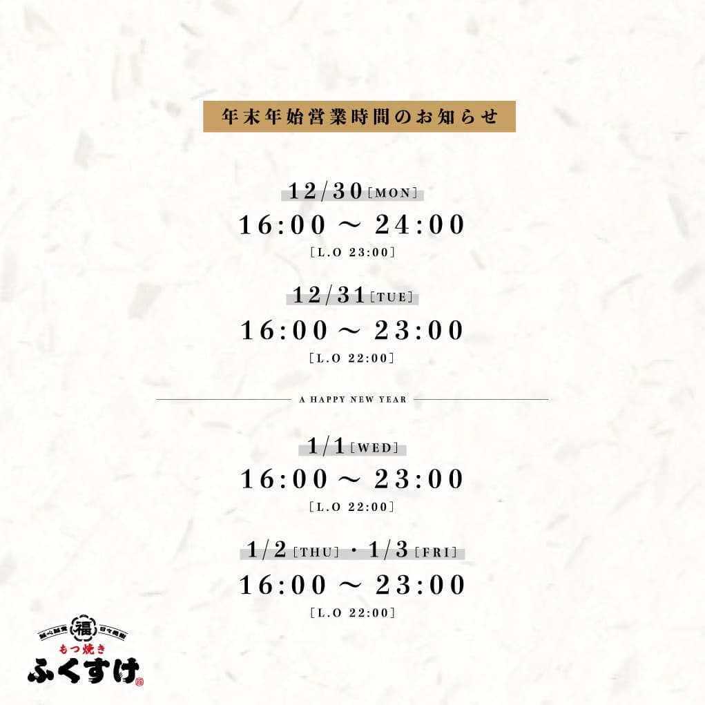 【もつ焼き福助 年末年始の営業のお知らせ】