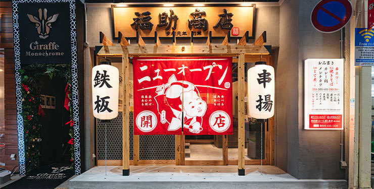 商店街でも一際目立つ、当店自慢の大きな暖簾がお客様をお迎え致します。暖簾をくぐるとそこには活気に満ち溢れた店内が広がります。皆様にきっと満足していただける自慢の料理とお酒でおもてなし致します。 |